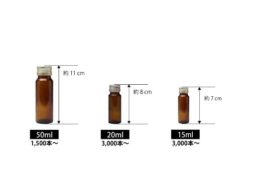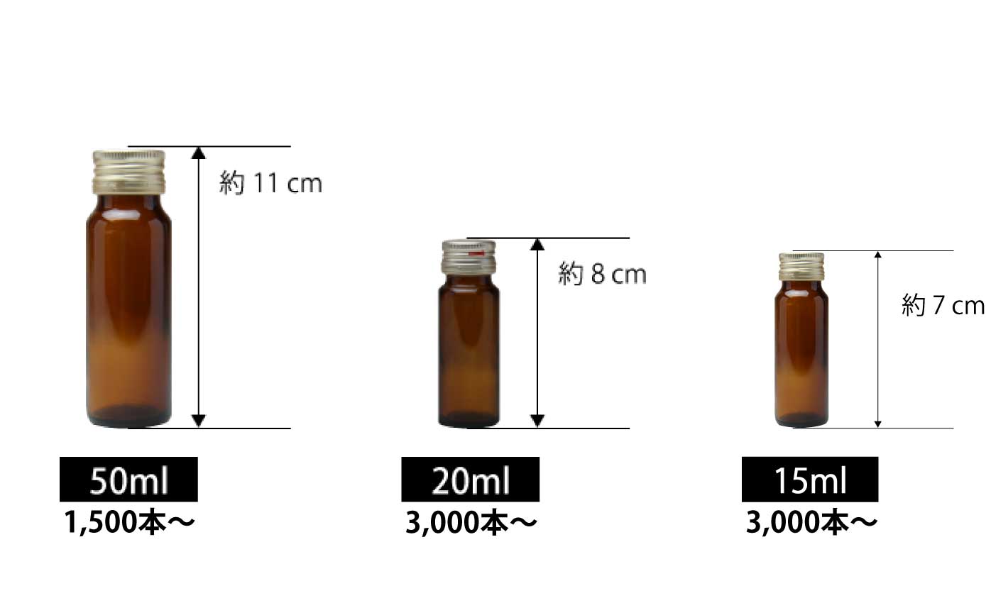 弊社でお受けすることのできる容器形態は、15ml・20ml・50mlの小型ビンのみです。製造にかかる費用などについてはお気軽にお問合せください。